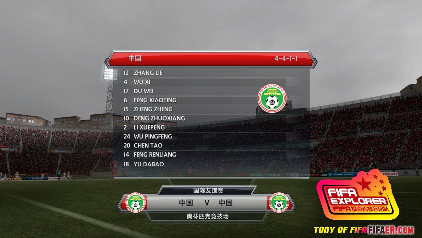Rosters:according to the last bulletin of CHINA FA official site on SEP26TH.Numbers:according to AFC.com 2014 WC Brazil qualifying stage match report.Data:partly for [FIFA 11][FIFAER]2011 Chinese Super League tournament patchChina PR national team players list1 Jiang Bo2 Li Xuepeng3 Sun Xiang4 Wu Xi5 Li Weifeng6 Feng Xiaoting7 Zhao Xuri8 Hao Junmin9 Gao Lin10 Deng Zhuoxiang11 Zhang Wenzhao12 Zhang Lie13 Liu Jianye14 Feng Renliang15 Zheng Zheng16 Huang Bowen*17 Du Wei18 Yu Dabao19 Liu Jian20 Chen Tao21 Yu Hai22 Yang Zhi23 Zheng Zhi24 Wu Pingfeng25 Zhang Chengdong**already in default DBInstall:Cover and regenerate.