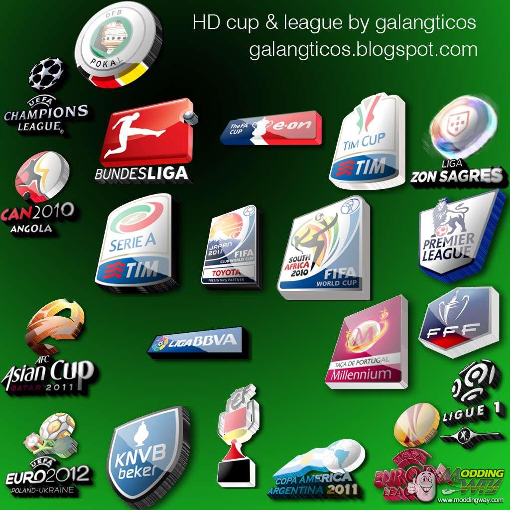 Download HD Leagues and cups 3D logos. This is a mod for Pro Evolution Soccer 2012 video game.