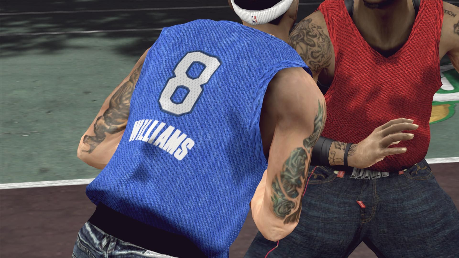 Download NBA blacktop jeans and shirt jerseys. This is a mod for NBA 2K12 video game.