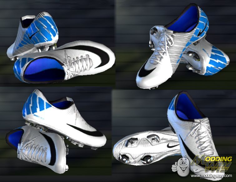 Download Nike Mercurial Boots - White Black Blue. This is a mod for Pro Evolution Soccer 2012 video game.