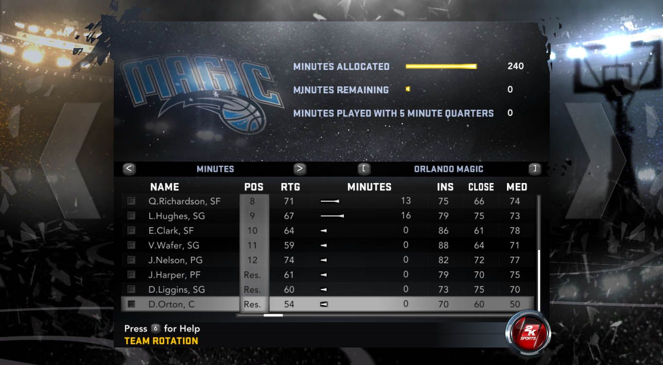 • Players that are injured or inactive have 0 minutes in the rotation.