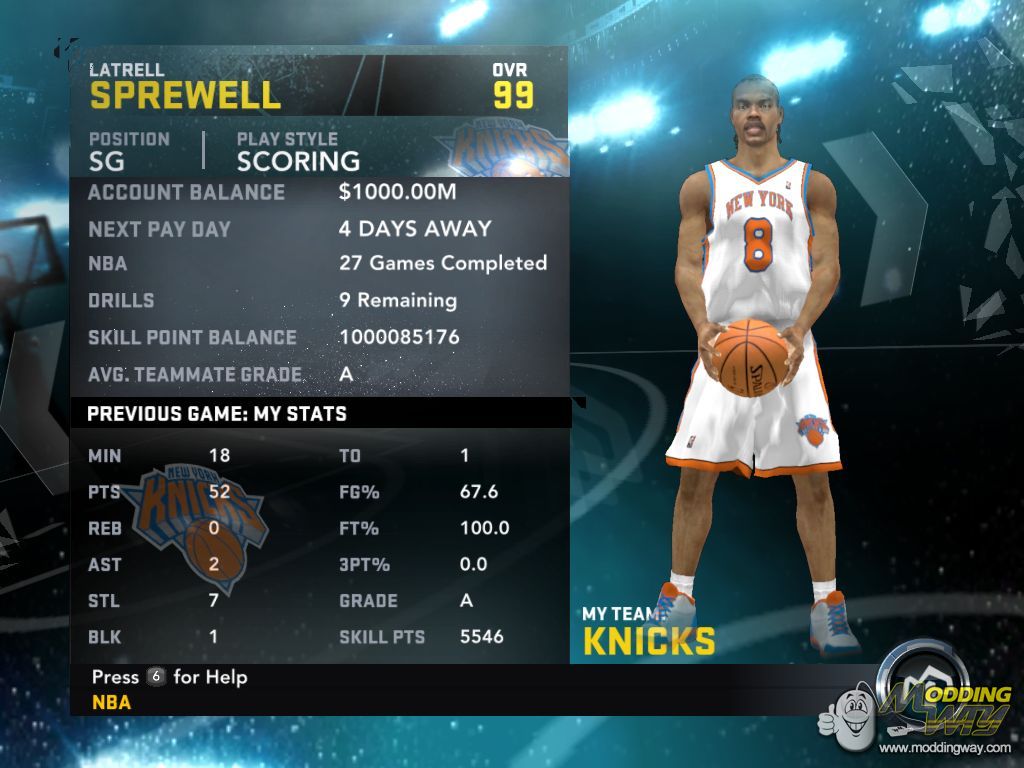 I've uploaded a My Player file for Latrell Sprewell complete with cyberface, signatures, 99 attributes, and Great on all skills....he is already in New York Knicks......