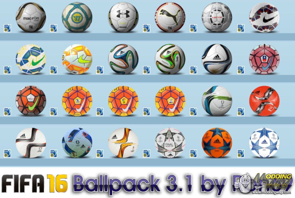 FIFA 16 Ballpack 3.1 by Ron69added balls- Nike Ordem Spor Toto Süper Lig 2015-16- Adidas 2015 UEFA Super CupUpdate balls- Nike Ordem Winter EPL/LFP/Serie A (edit for original EA Model)- Nike Ordem FA Cup (edit for original EA Model + new Logo)incl. PreviewsCREDITS: EA, jorge78, danyy77, Ron69, john_shadow8, a L E x _ 1 O