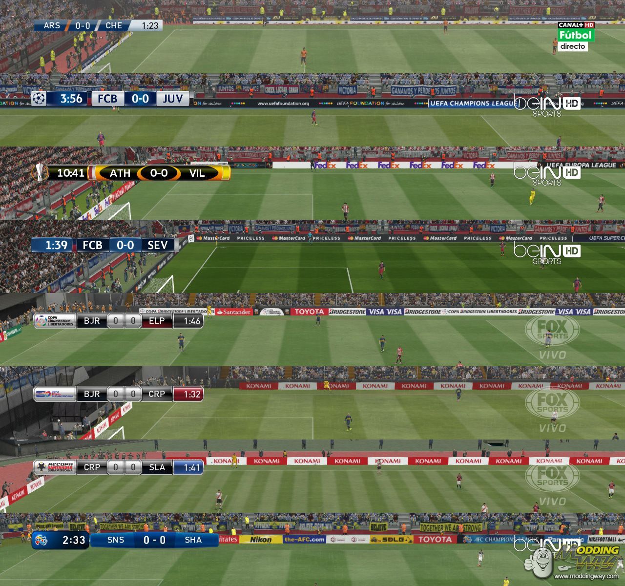 [V1]- Exhibition + TV Logo (C+ Fútbol)- UEFA Champions League + TV Logo (beIN)- UEFA Super Cup + TV Logo (beIN)- Copa Libertadores + TV Logo (FOX)- Copa Sudamericana + TV Logo (FOX)- Recopa Sudamericana + TV Logo (FOX)- AFC Champions League + TV Logo (beIN)[V2]- Added new UEFA Europa League Scoreboard + TV Logo (beIN)- Fix UEFA Champions League Scoreboard + TV Logo (beIN)[V3]- Added new UEFA Super Cup Scoreboard + TV Logo (beIN)Credits: sxsxsx (CPK File Manager v1.7a)Jenkey1002 (PES File Explorer 2014)