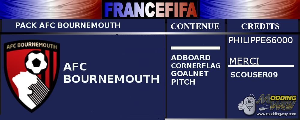 Download Pack AFC Bournemouth (2 adboards, cornerflag, goalnet & pitch). This is a mod for FIFA 16 video game.