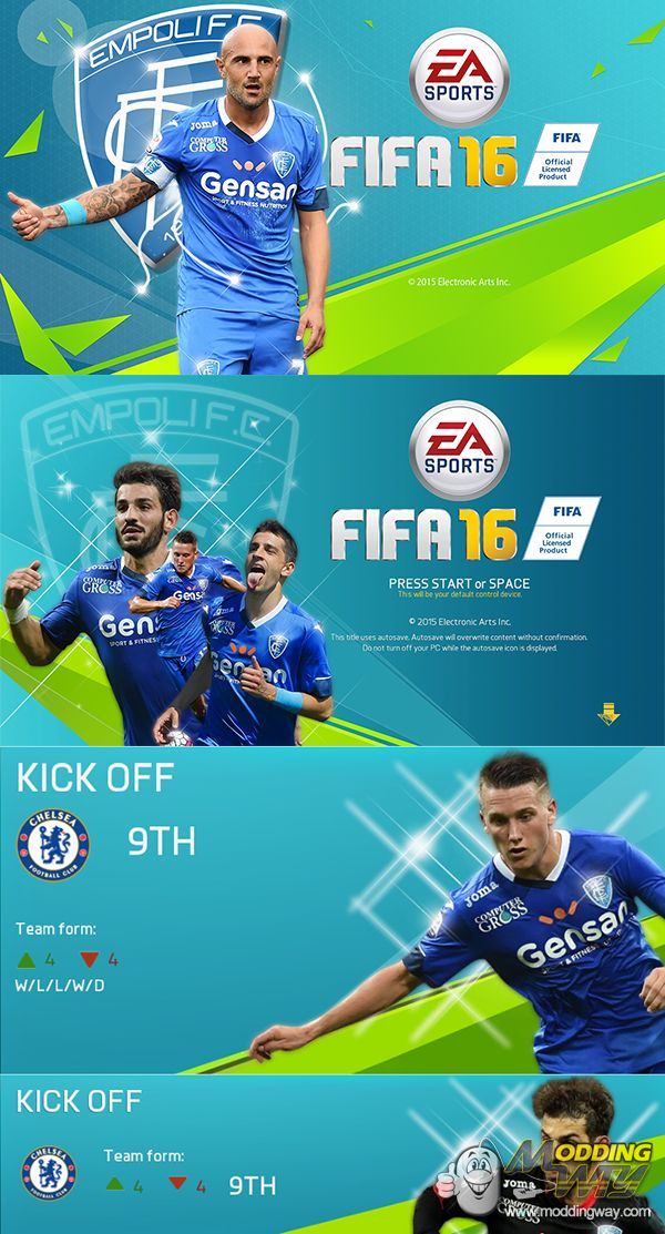 Download Empoli...Splash/Press Start Screen & Kick Off Tiles. This is a mod for FIFA 16 video game.