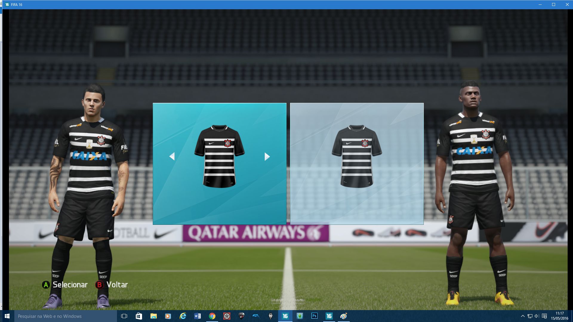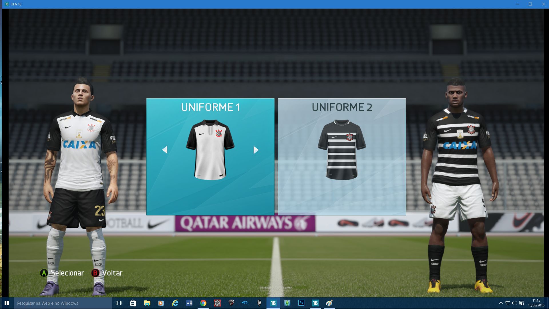 Uniformes do Corinthians 15/16 - Com uniformes alternativos, todos branco e todo preto.