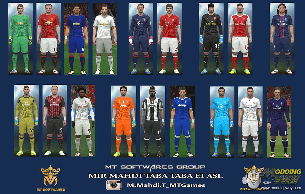 New Kit 2016-17 MT Games 1991 (Mir Mahdi Taba Taba Ei Asl)----------------------------------------------------------Kits : AC Milan - Juventus - Manchester United - Bayern Munichen - Arsenal - Real Madrid - PSGKits by : MT Games - Nemanja BRPTo use the kit you need to DLC 3For use the kit :Put the mtkit17.CPK in your download folderand edit dpfilelist with DpFileListGeneratorMake BY MT GAMES 1991MT SOFTWARES GROUPEnJoY