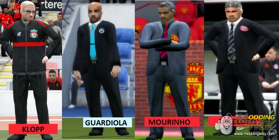 Here are the graphic updates (suits,badges,tracksuits,ties etc) for some managers that are bound to rock their respective leagues in the 2016-2017 season: - Guardiola (Manchester City - I.D 10) - Ancelotti (FC Bayern - I.D 21) - Mourinho (Manchester United - I.D 11) - Klopp (Liverpool - I.D 9) ** BONUS: Arséne Wenger (Arsenal - I.D 1)