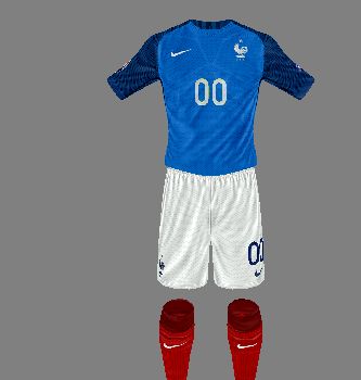 New home kit for France with the classic white short + a creative all white away kit (kit top from Euro 2016 + original short & sleeves from the game) + a red kit for the goalkeeper (can be used as away kit, you decide).