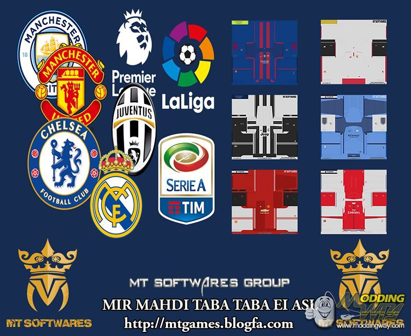 New Kit 2016-17 PES 2017 MT Games 1991 (Mir Mahdi Taba Taba Ei Asl)----------------------------------------------------------Kits : Juventus - Manchester United - Arsenal - Real Madrid - Chelsea - Barcelona - Leicester City - Liverpool - Manchester City - Sevilla - TottenhamKits & Font & Numbers by : MT Games - MRI_20 - Nemanja BRE - Angeltorero - Klashman - Tasci Kits -KonamiBarcelona WC LogoUpdate Font & Numbers : Arsenal - Paris Saint Germain -Liverpool - Roma - Atletico Madrid - NapoliUpdate All Emblems & Flag Number Of TeamsSpecial Thanks To MRI_20For use the kit :Put the mtkit17.CPK in your download folderand edit dpfilelist with DpFileListGeneratorMake BY MT GAMES 1991MT SOFTWARES GROUPEnJoY
