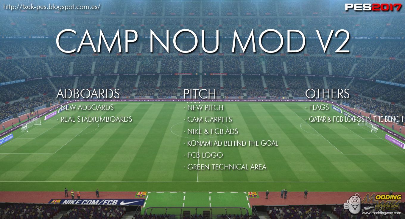 Download Camp Nou Mod V2. This is a mod for Pro Evolution Soccer 2017 video game.