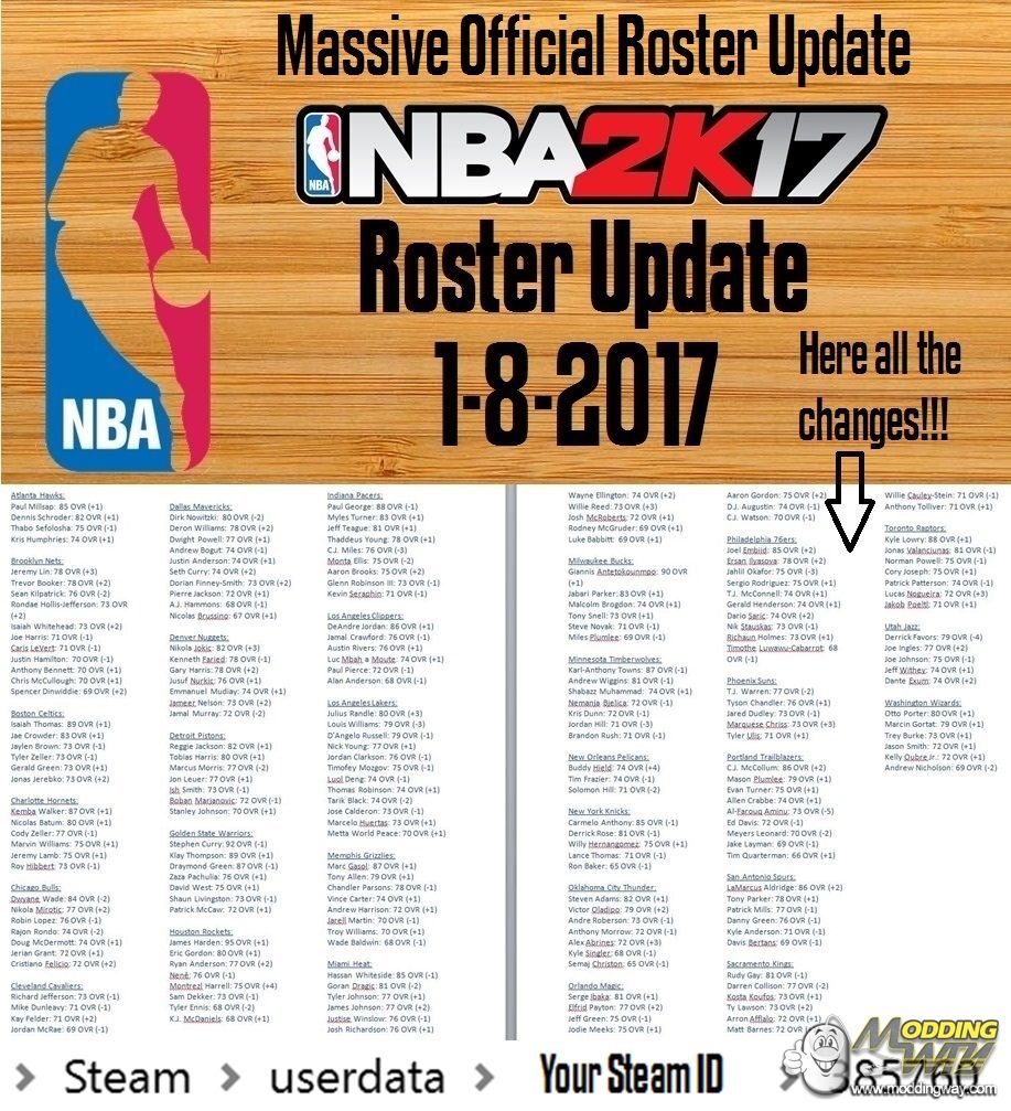 Download NBA 2K17 Massive Official Roster Update 1-8-2017. This is a mod for NBA 2K17 video game.