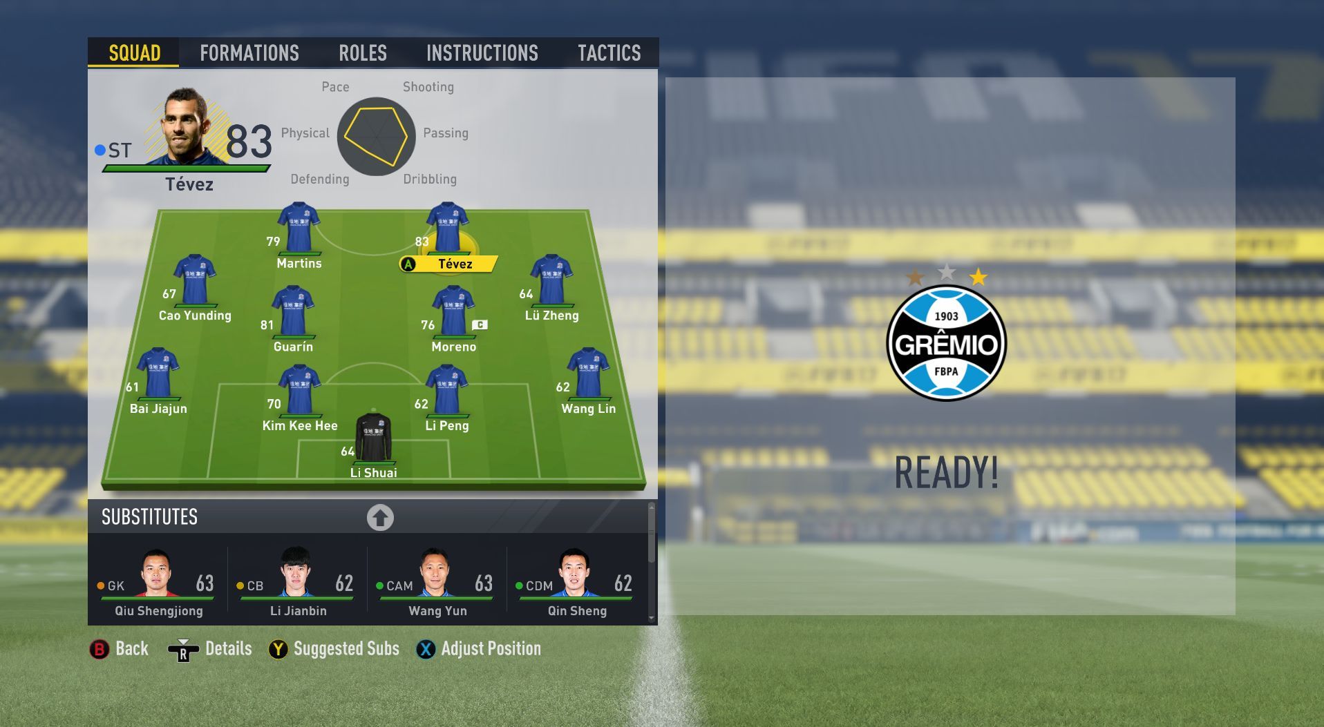 -Gremio real squad, formation, names, appearances, etc