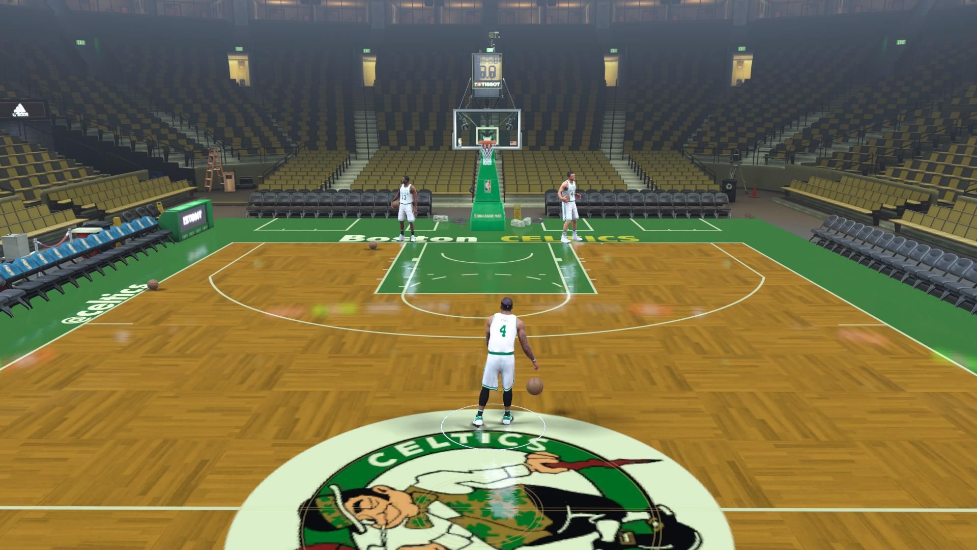 No floor files with this one, just the stadium. Do not use my floor files from last release just delete them becouse the updated steam files blocks them from being used so I edited the stadium files. I only added the bosten celtics floor, you dont have to use it for the effect to work.