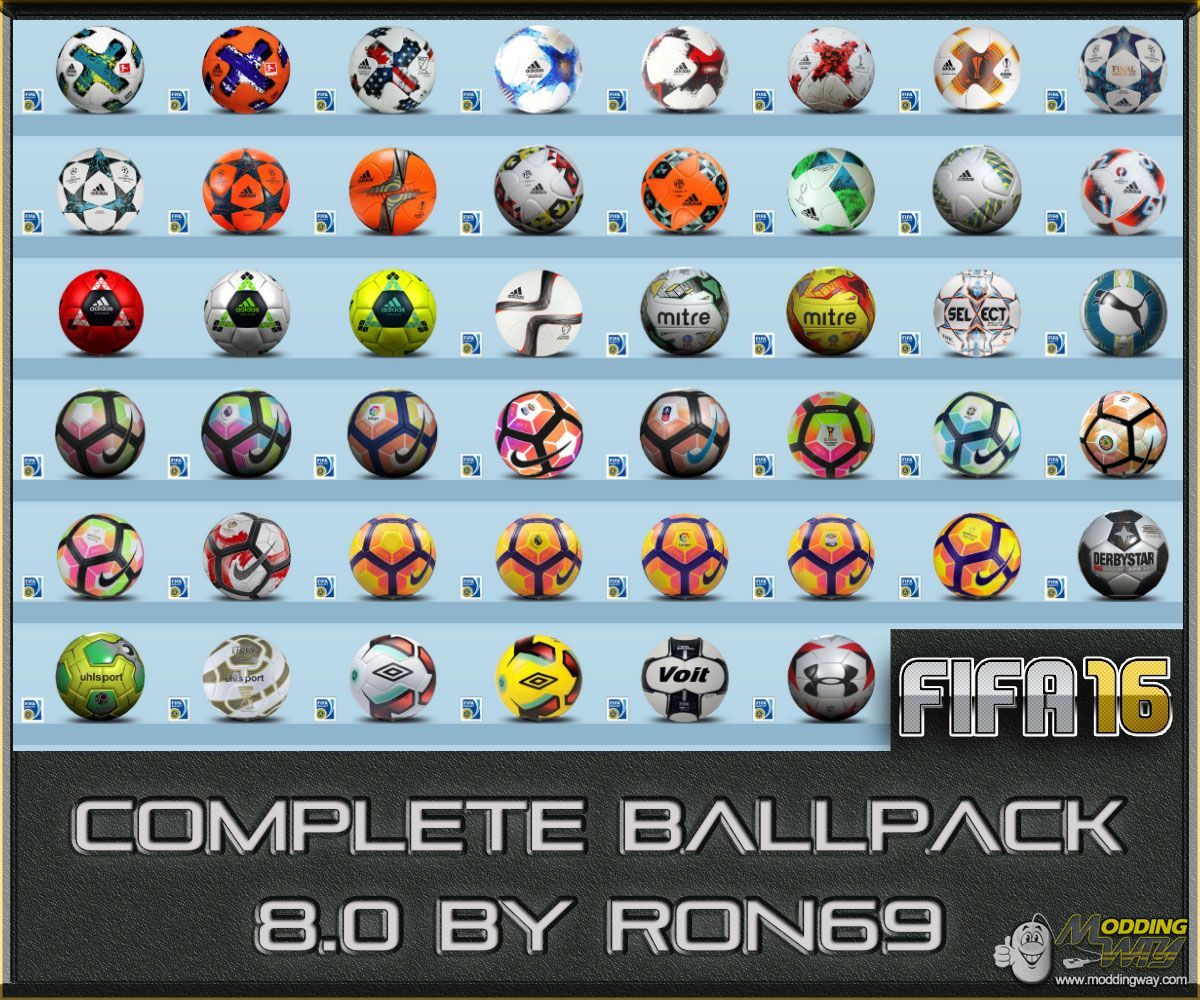 - all new and created Balls for the Saison 2016/2017 and 2017/2018- all Liga balls assigned for Rev Mod- new Balls added- incl. Previewsadded new Balls- Nike Ordem 4 Copa Libertadores- Nike Ordem 4 Brasileiro- Nike Ordem 4 Scotiabank CONCACAF- Adidas torfabrik 2017/2018- Adidas torfabrik Winter 2017/2018- Adidas Argentum 2017- Adidas Nativo MLS 2017- Adidas UEFA CL OMB 2017/2018- Adidas UEFA CL Finale 2017 Cardiff- Adidas UEFA EL OMB 2017/2018- Adidas Starlancer V- SELECT Brillant Super TB 2017/2018 ALKA Superliga- Voit Legacy Liga MX 2016CREDITS: barrysun, Ron69, nabo78, AlexDelPiero, Anamorph, Hayate, jorge78, DaveBeceINSTALL: Copy the data Folder in the FIFA16 Root Directory, regenerate, done!To view all the balls in the preview use the tool CM16 (Picture CM16.jpg). Open FIFA 16, click the ball icon. Select the ball. Click on "Visible in Game Menu". To save. Then regenerate again.