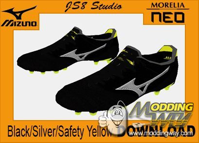 Download Mizuno Morelia Neo II 'Black Star' Black/Silver/Safety Yellow. This is a mod for FIFA 16 video game.
