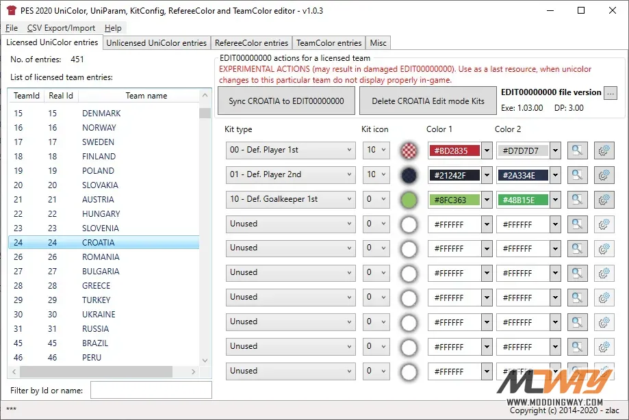 ability to unlicense licensed team entries (two options - unlicensing of the unicolor entry only or unlicensing in both unicolor.bin and team.bin file) via pop-up menu