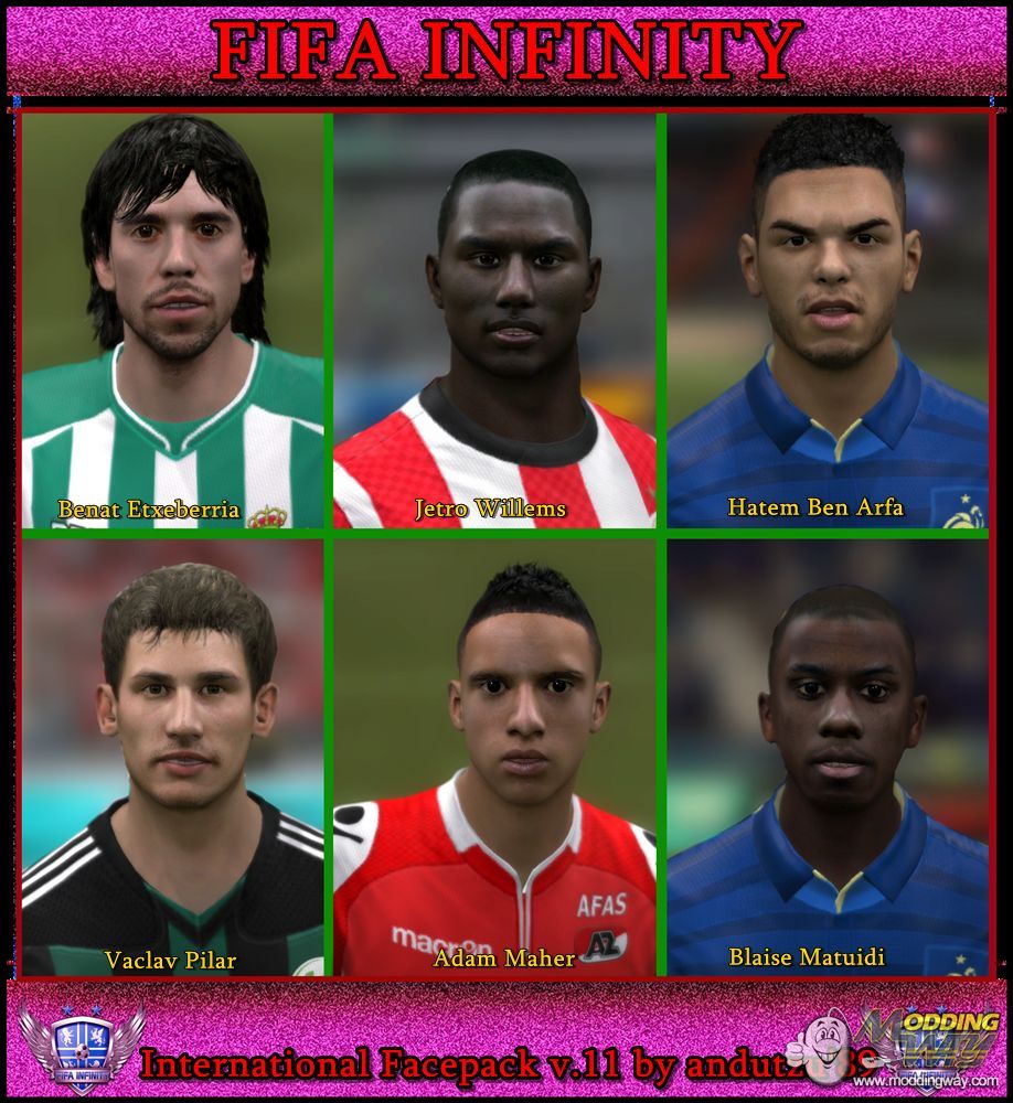 This pack contains next 6 faces:Benat Etxeberria - Real BetisJetro Willems - PSV/Holland NTHatem Ben Arfa - Newcastle/France NTVaclav Pilar - Vfl Wolfsburg/Czech Republic NTAdam Maher - AZ AlkmaarBlaise Matuidi - PSG/France NT