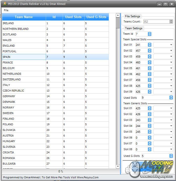 hi, After Sound Master Project File Has Deleted by Mistake I Decided To Release Chants Relinker Until I Rebuild Sound Master Project.Picture:Info :New PES 2013 Chants File Have New Slots (Generic Slots)So Now You Can Relink The Special Slots For The TeamAnd The Generic Slots For The ItFilesMap:Use Unnamed_3040 dt0forUse Unnamed_28 dt03Change log :v1.0-Relink Chants-Add Chatns-Delete Chants
