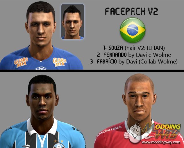 Face Souza Cruzeiro PES 2013, Face Fernando Grêmio PES 2013, Face Fabricio Internacional PES 2013,