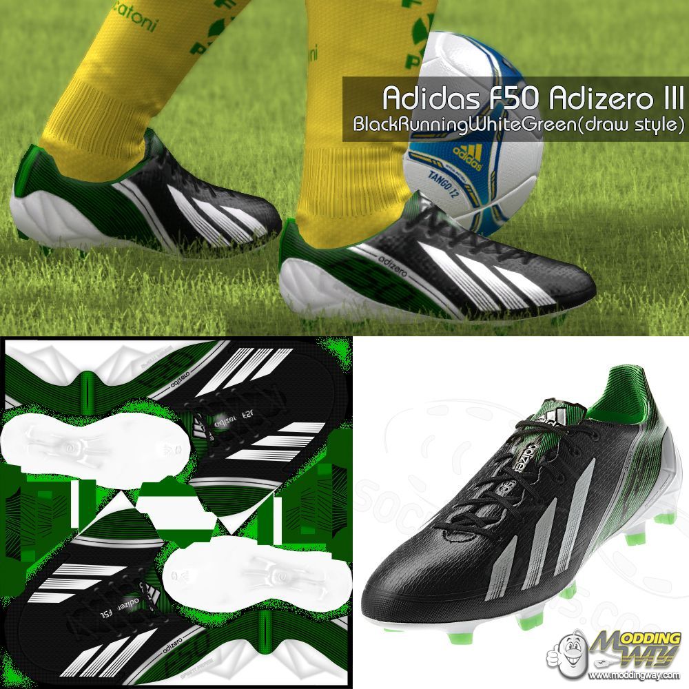 Download Adidas F50 Adizero III Black Running White Green(draw style). This is a mod for FIFA 13 video game.