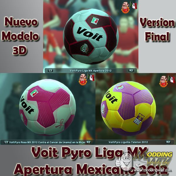 Download Pack Voit Pyro Liga MX 2012 Torneo Mexicano/Nuevo Modelo 3D Full HD. This is a mod for Pro Evolution Soccer 2013 video game.