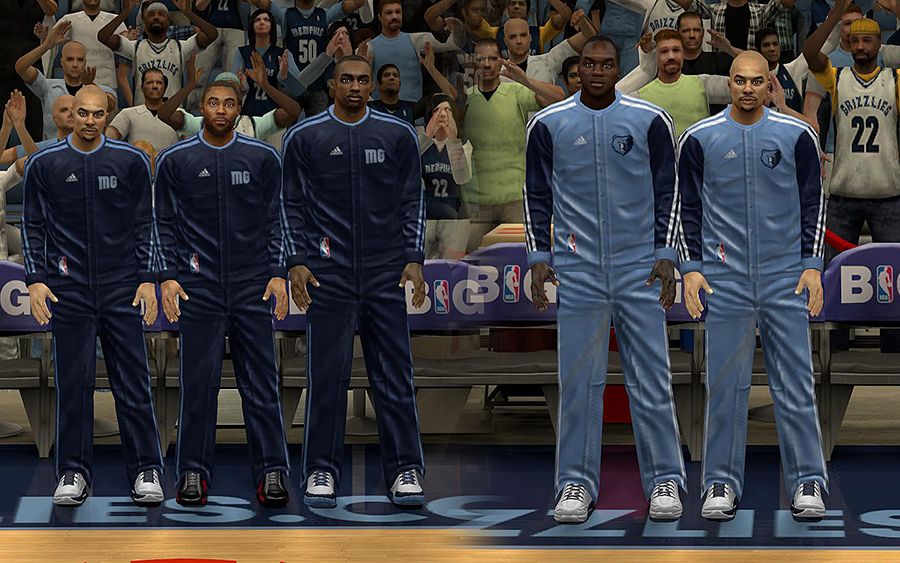 This updates the jerseys for the Memphis Grizzlies and the Warmups, along with a crowd fix.Includes:- Alternate, Home, & Away- All new REV30 mesh holes, smaller and detailed.- Remade GRIZZLIES, & MEMPHIS script. also the Numbers.- Fixed the distribution of lines on the side.- Fixed the number texture, size, color and position- Detailed logos- Realistic warmupsNOTE: Use my Jersey Roster (http://forums.nba-live.com/downloads.php?view=detail&df_id=3853) for best result.Back up your files in case you don't like it, so that you can return to the old one.Credits: TNeckDME's crowd as a base.Permission? Problems? Help? Favors? Requests? Thanks? Go here: http://forums.nba-live.com/viewtopic.php?f=149&t=88423