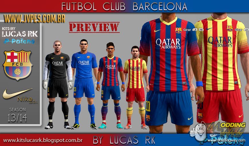 Download Kit Set FC Barcelona 2013/14. This is a mod for Pro Evolution Soccer 2013 video game.
