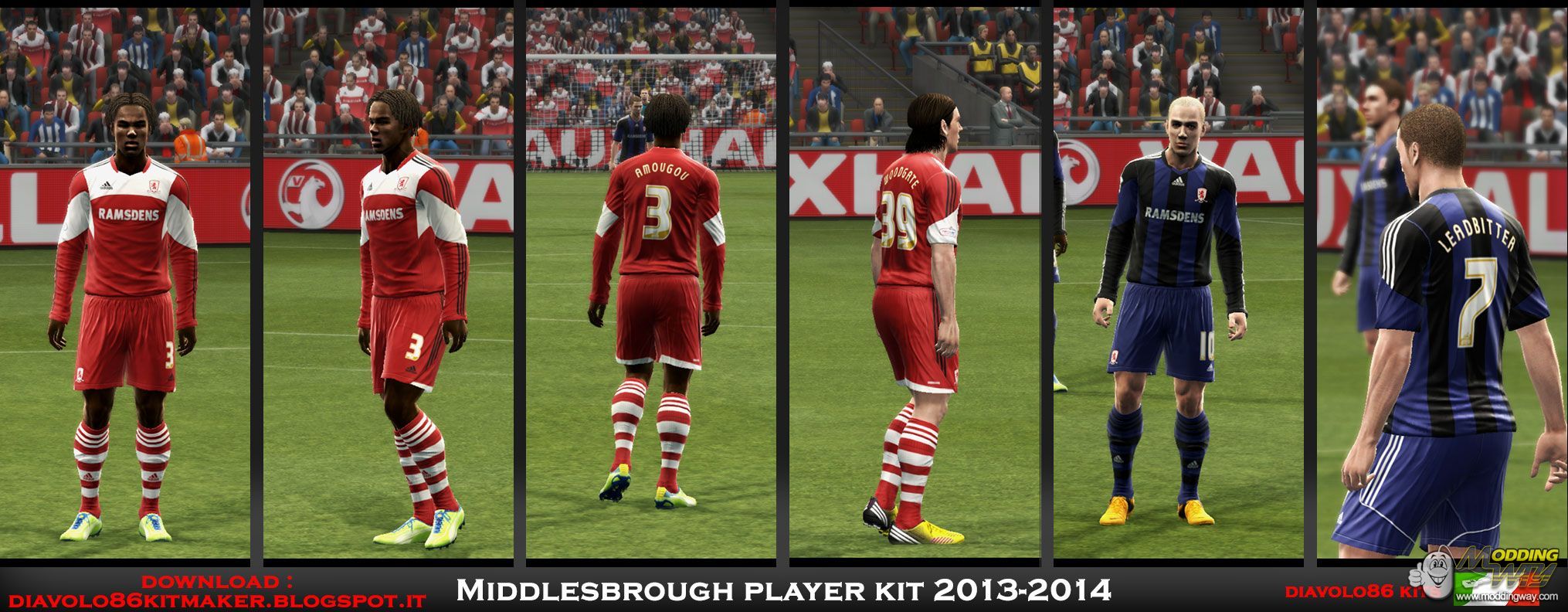Download Middlesbrough GDB Player Kit 2013-14. This is a mod for Pro Evolution Soccer 2013 video game.