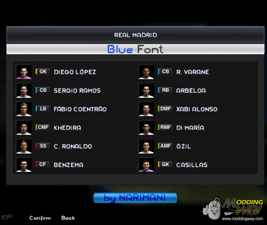 PESoccer 2013 | "Blue" Font | by NARIMANIInsert binary file in dt05_e.img folder of your kitserver / import binary file to dt05_e IMG file of your img folderTnx for DownloadingPlease don't change the linkCopyright © 2011 - 2013 by NARIMANI All Rights Reserved