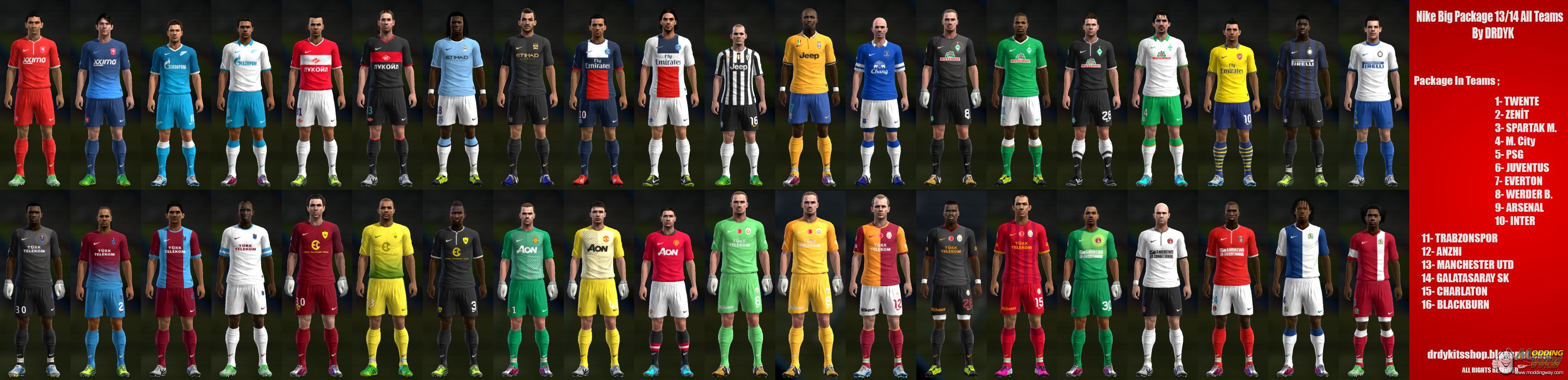 Juventus 13/14 , Galatasaray 13/14 , Twente 13/14 , Zenit 13/14 , Spartak Moscow 13/14 , Manchester City 13/14 , PSG 13/14 , Everton 13/14 , Werder Bremen 13/14, Arsenal 13/14, Inter 13/14 , Trabzonspor 13/14 , Anzhi 13/14 , Manchester United 13/14 , Charlaton 13/14 , Blackburn 13/14 all kits - DOWNLOAD -
