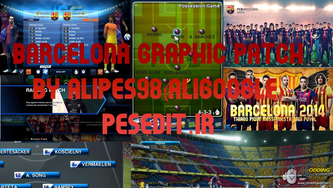 NEW barcelona graphic patch by alipes98(aligoogle)-new HD wallpapers and screens design by alipes 98-scorebord-mosaic newcamp-new game plan-new ICONS-new exebition menu pictures-new menus style(light blue)-and more ...MEDIAFIRE LINK ADDEDand barcelona HD start screen packmaker facebook:fb.com/ali.aligooglepowerd by:www.pesedit.ir iranian editors group