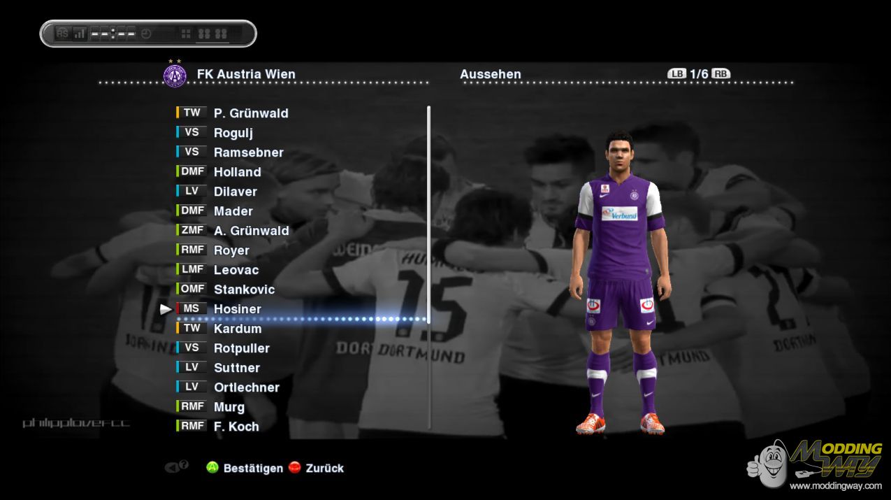 FEATURES- Many more transfers in all divisions done (08/09)- ML/BaL/CL crashes fixed- Austria Vienna added, now complete 13/14 CL- Wave Glossy Logos fixed- Most international starters corrected for 13/14- Many new kits- Many new faces- Many reported bugs fixed GENERAL FEATURES- Complete Bundesliga added with correct kits, logos, squads- Complete 2. Bundesliga added with correct kits, logos, squads- Complete MLS added with correct Kits, logos, squads (selectable via switch)- Complete 3. Liga added with correct Kits, logos, squads (selectable via switch)- Mini 2. division for all leagues (3 Teams in every division = 24 new teams, Teamlist above)- Premier League team names corrected and logos and kits added- Liga ZON Sagres team names corrected and logos added- All fake national teams corrected- Uni GDB folder with kits for all unlicensed and new teams included- 1000+ transfers in all divisions done (27/08)- BATE Borisov and Anzhi added- 4 new european teams: Basel, Plzen, Kazan and Steaua replacing the last 4 fake teams in ML- All 8 teams of the U21 european championship added with correct squads, kits- League and Cup logos corrected- Faceserver with more than 3000 faces added- New Ballpack- New Bootpack + many players correctly relinked- New Refereekits- Correct Goalnets for many teams relinked- ML Ranking corrected- International starter in ML fixed- Gameplaytool included- Big bannerpack included- New 13/14 UCL/Supercup/Europa League adboards- Optional Chantpack for almost all teams as Addon- Kitserver included- Support for DLC 6.00- 1.04 exe supported (with Gameplaytool 1.03)- Own exe- New Switch (Limit 2nd league to 3 teams, deactivate bootstats in ML, Adboardswitch, Scoreboardswitch)- Logoswitch (Default and Wave Glossy)- Menumusic Switch (import your own mp3's etc. easily into the game)- Easily add new Scoreboard or Adboard files to the switch with the Switch Manager- No Blur Patchteam:Hajnal30Borusse92Blackrider1993 Credits:Barcafan,Jenkey1102, w!ld@, juce, Ercan Ayan(pesbox.com), SKILLS_ROONEY, Hawke, 1002MB, Dynamoforever, goodfellas123, klashman69, Harrienak, Hilmar1954 and all kit and face makers