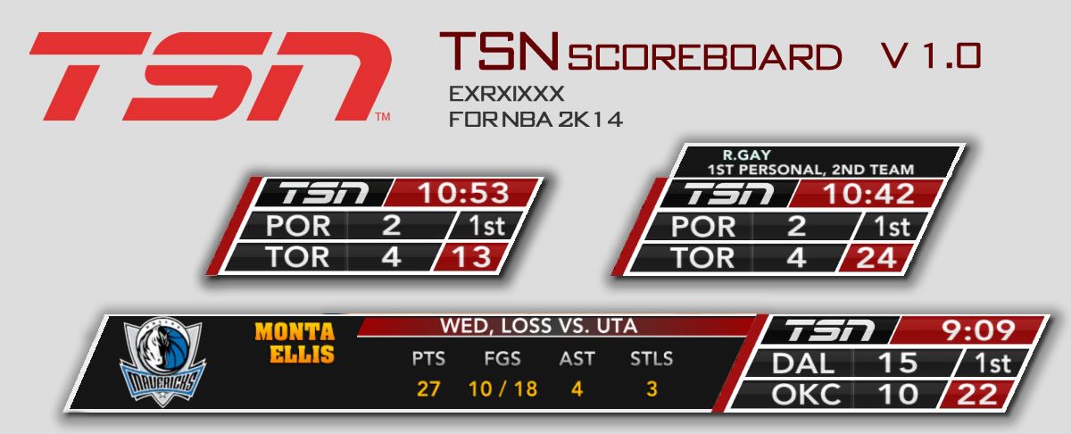 Download TSN Scoreboard v1.0. This is a mod for NBA 2K14 video game.