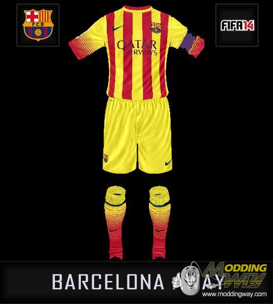 Download Barcellona Away Kit Yellow Shorts. This is a mod for FIFA 14 video game.