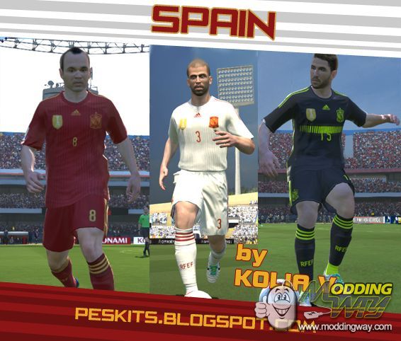 Download Spain 2014 White kit. This is a mod for Pro Evolution Soccer 2014 video game.