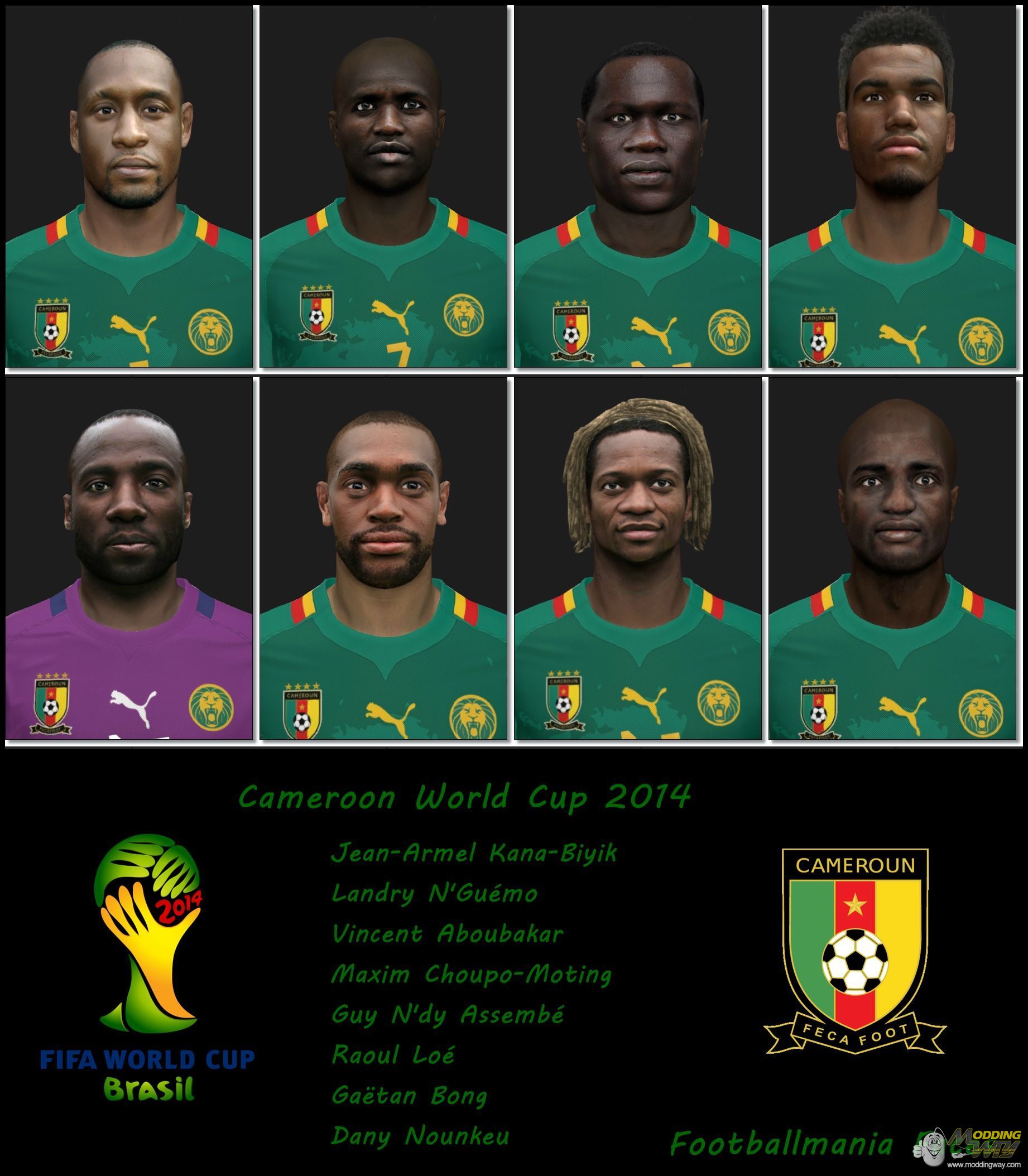 Download Cameroon World Cup 2014 Facepack. This is a mod for Pro Evolution Soccer 2014 video game.