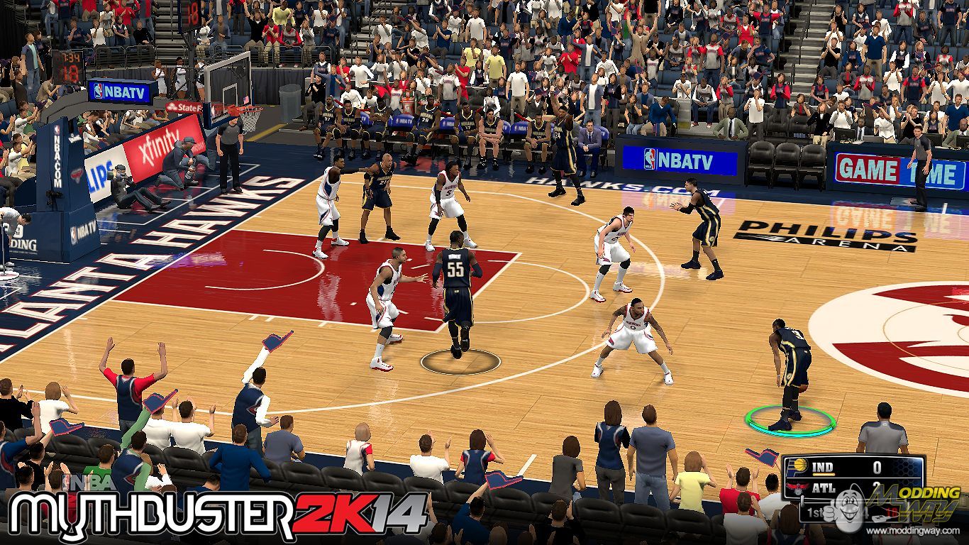 It includes the Playoffs, Western Conference Finals, and The Finals logos. They are in separate floor files though so you still have to copy them when playoff games come.