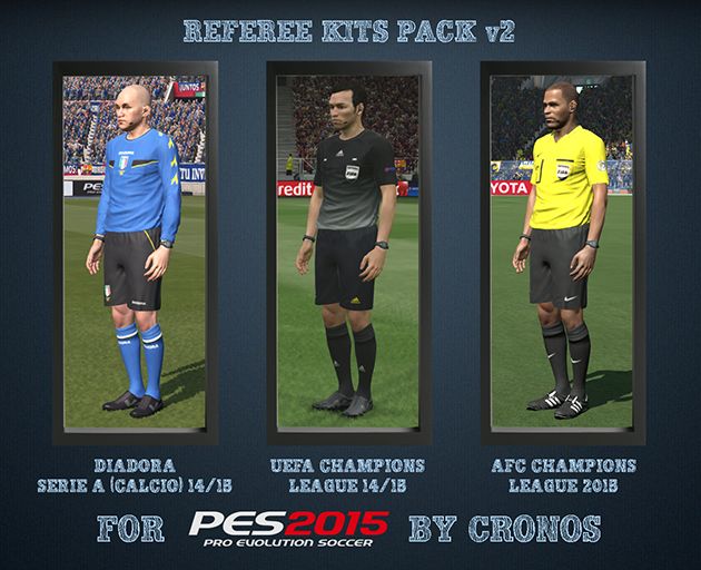 Download Referee Kits Pack v2 - Serie A (Calcio) + UCL + ACL. This is a mod for Pro Evolution Soccer 2015 video game.