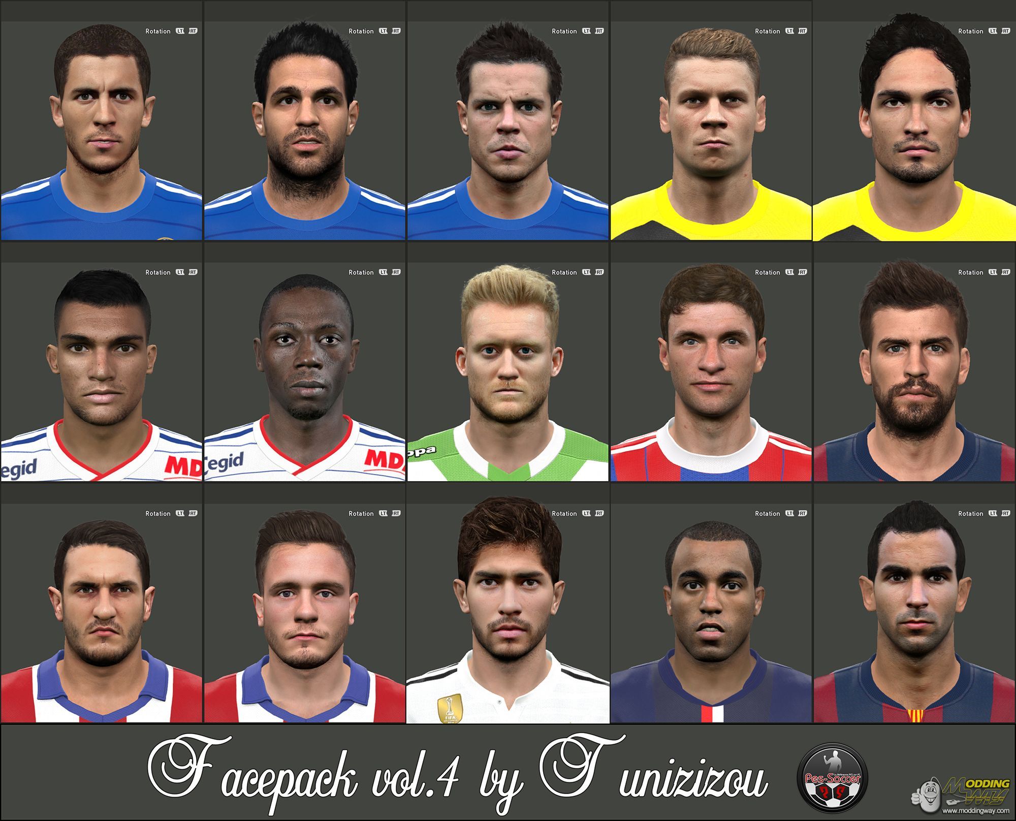 PES 2015 Facepack vol.4 by Tunizizou36998 E. HAZARD7959 C. FABREGAS35876 C. AZPILICUETA39744 L. PISZCZEK36769 M. HUMMELS47547 L. ROSE32561 M. DABO43042 A. SCHÜRRLE40714 T. MÜLLER8639 G. PIQUÉ41082 KOKE63497 SAÚL46614 LUCAS SILVA42898 L. MOURA42869 M. MONTOYA